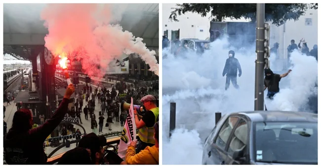 Во Франции протестующие захватили железнодорожный вокзал (1 фото + 4 видео)