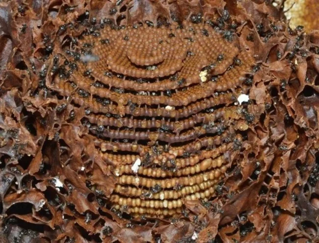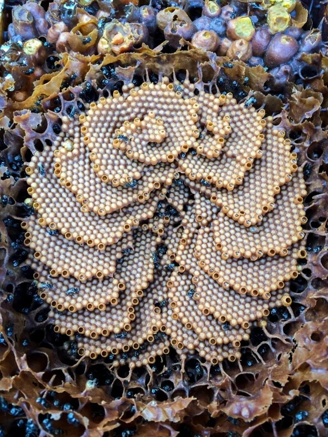Точная причина, по которой насекомые строят именно спиральные ульи, неизвестна. Возможно, это улучшает циркуляцию воздуха, особенно учитывая, что другие пчелиные колонии часто страдают от плохой вентиляции.