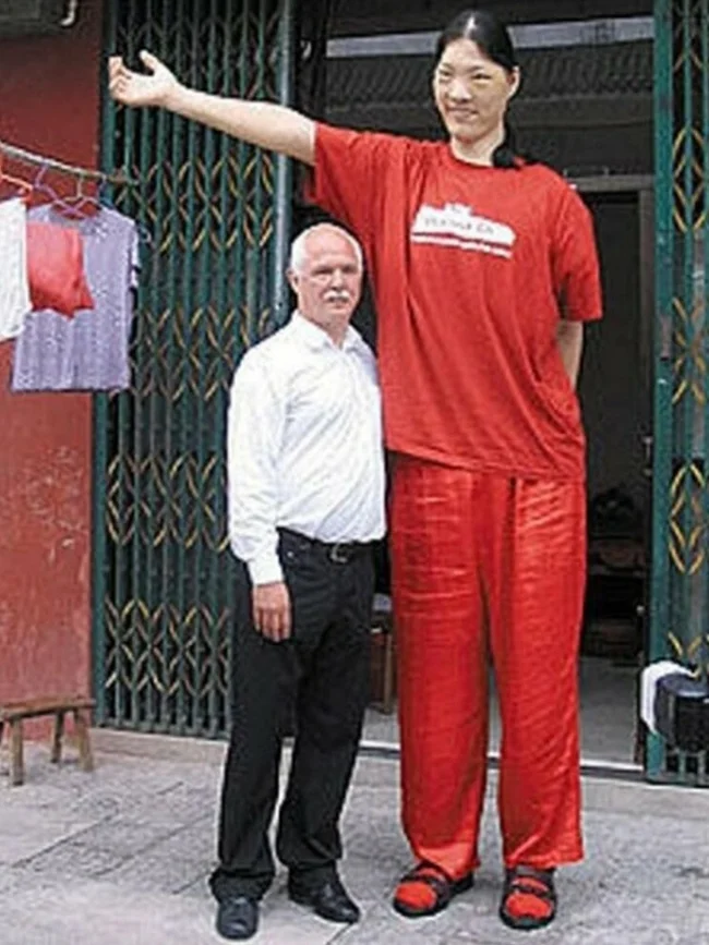 Китаянка, занесенная в книгу рекордов Гиннесса как самая высокая женщина в мире. Ее рост составляет 233 см. Уже с самого детства Яо начала расти необычно быстро, что связано с опухолью гипофиза. Родители заметили, что с 3-х лет девочка ела раза в три больше сверстников. В 11 лет она доросла до 188 см, в 15 – до 202 см.