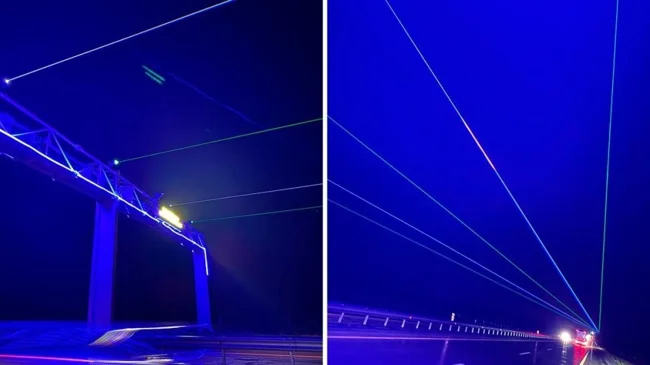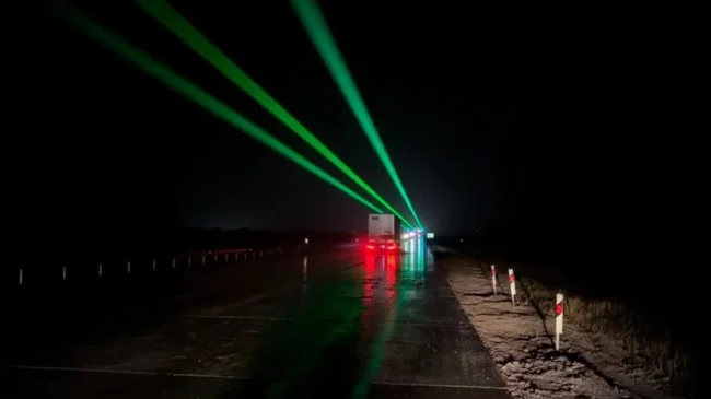 Оборудование уже несколько дней работает в тестовом режиме. Лазерные лучи видны с расстояния 10 километров. При этом в устройстве используются низкоинтенсивные безопасные для глаз излучатели, формирующие световые коридоры или сигналы над трассой.
