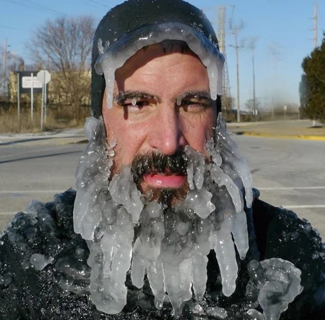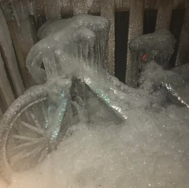 Это сколько же он на улице гулял, что столько льда намерзло?