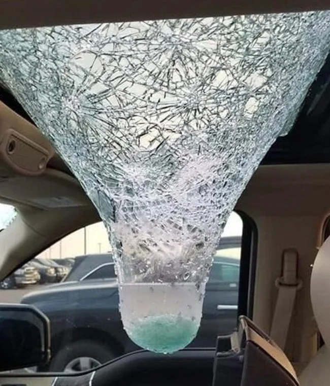 Какое хорошее стекло, выдержало!