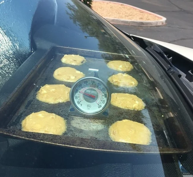 Оставляя машину на парковке в жаркий день, можно оставить тесто под стеклом, чтобы к вечеру печеньки уже запеклись