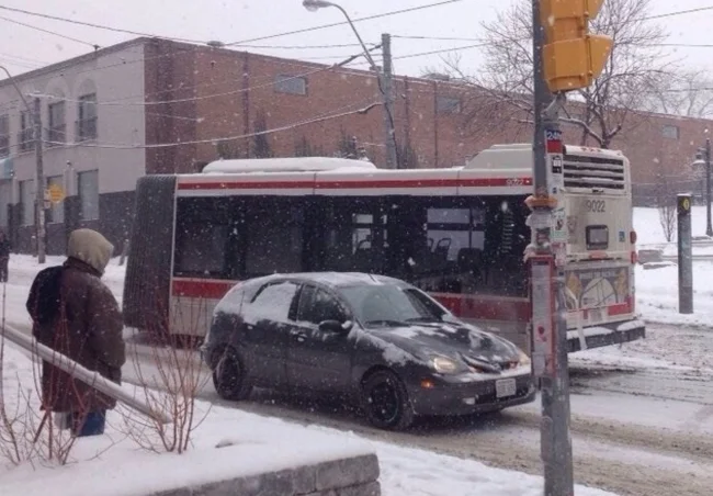 Автобус-гармошка развалился из-за низких температур