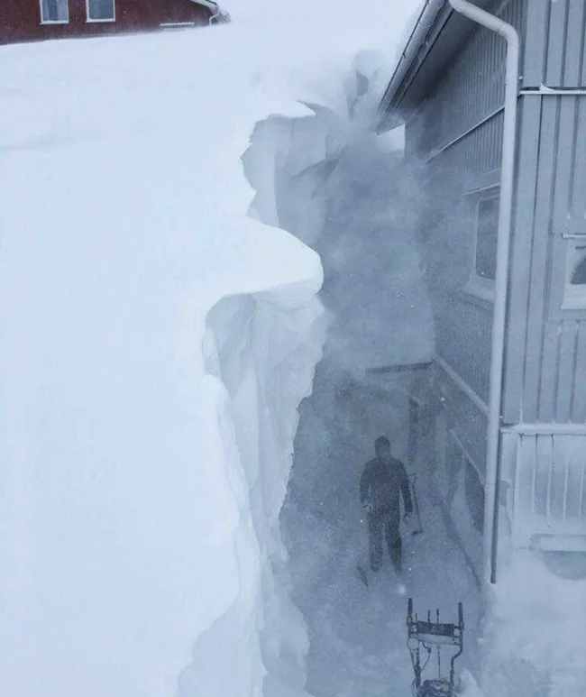 На курорте Риксгрансен, на севере Швеции, выпало немножко снега — метра на 4 высотой