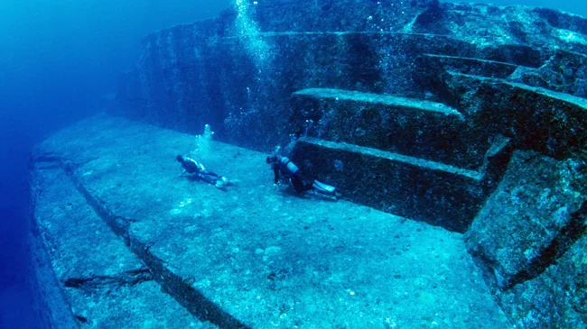 В 1986 году японский дайвер Кихачиро Аратаке искал акул-молотов у острова Йонагуни и случайно наткнулся на странное сооружение. Огромные плиты песчаника, идеально параллельные линии, спиралевидная лестница.