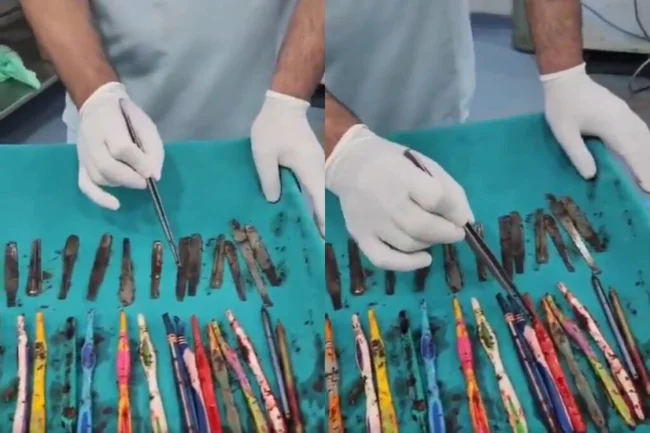 В Индии хирурги извлекли из желудка мужчины 29 ложек, 19 зубных щеток и 2 ручки (2 фото + 1 видео)
