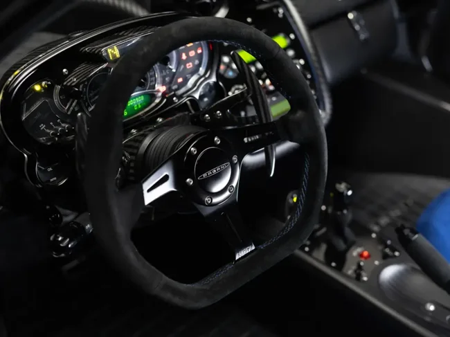 Кроме того, суперкар получил уникальную отделку, в которой кремово-белый оттенок сочетается с синими и чёрными акцентами, а также со вставками из открытого карбона. Уникальности Riviera добавляют расширенные колёсные арки и ковш-воздухозаборник на крыше.