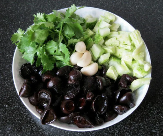 Свиными пятачками в Китае называют гриб булгария пачкающая. Эти круглые и плоские грибы, растущие на стволах упавших деревьев, действительно напоминают свиные пятачки, однако называли их так китайцы по другой причине. Эти грибы считаются ядовитыми, но в Китае их едят. Их долго вымачивают, потом варят, жарят, но немного яда остаётся, поэтому наутро после салата лицо немного опухает и становится похожим на свиной пятачок.
