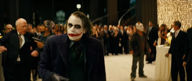 Когда Майкл Кейн вспоминал Хита Леджера в роли Джокера, он отмечал, что Хит смог намного превзойти Джека Николсона, Джокер которого долгое время считался самым лучшим. По мнению Кейна, на фоне николсоновского Джокера персонаж Леджера вселял настоящий страх. И эти слова – не пустой звук, потому что Майкл действительно испытал эту эмоцию, когда впервые увидел Хита в деле. Это произошло в сцене, в которой Джокер со своими людьми захватывает целое здание и множество богатых людей в придачу.
