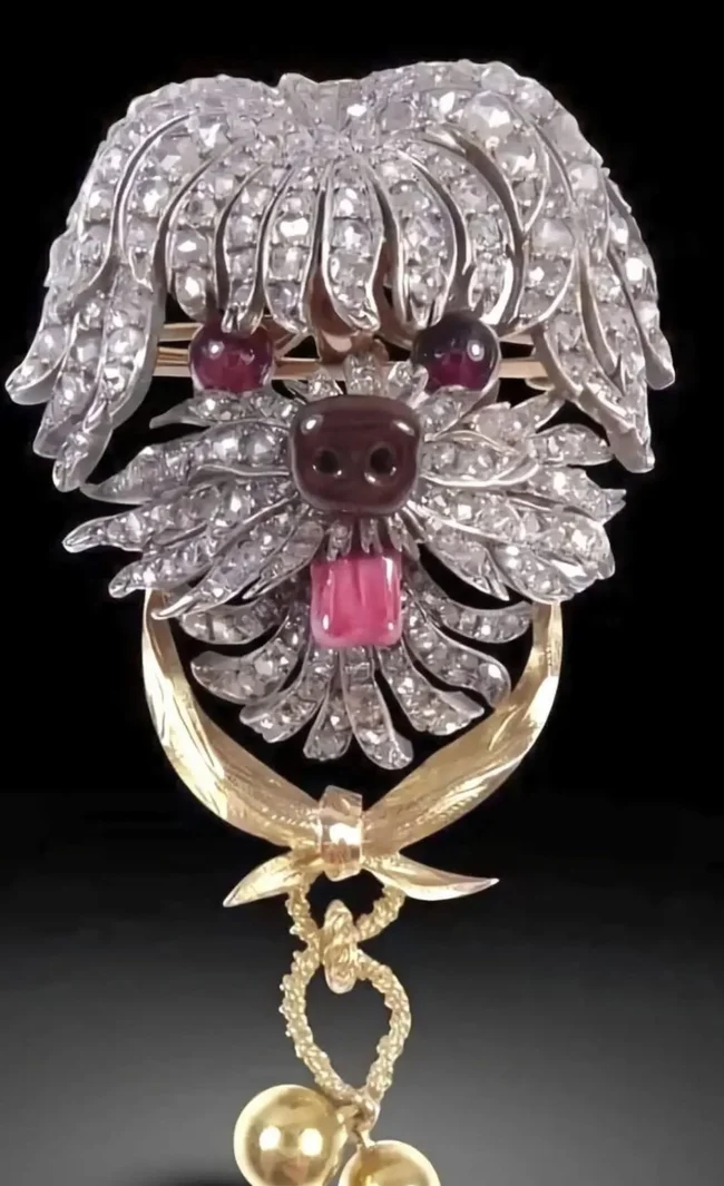 Брошь в форме собаки из золота, серебра, гранатов и бриллиантов. Около 1890 года. Мастерская ювелира Фредерика Бушерона.