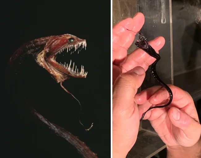 У многих обитателей глубин рот или живот растягивается так, что в них способна поместится добыча размером с самого охотника