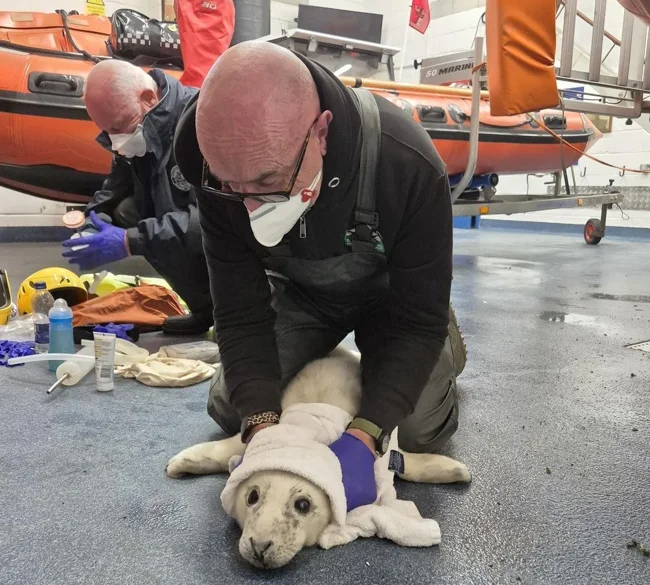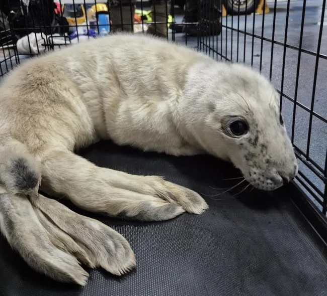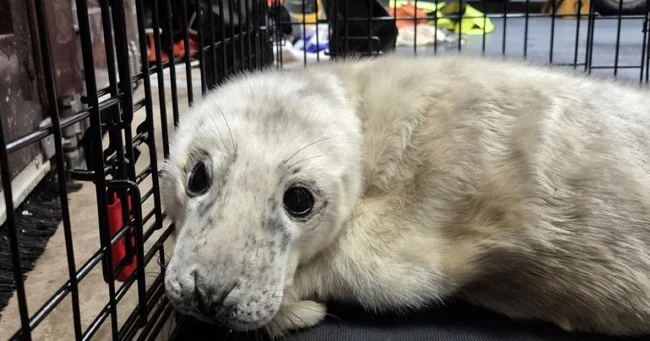 Спасательная станция поделилась новостями: «Сегодня нам сообщили из Службы спасения морских обитателей, что детёныш тюленя теперь находится в центре в Тонтоне. Его назвали Элвисом, учитывая связь с Порткоулом и время года».