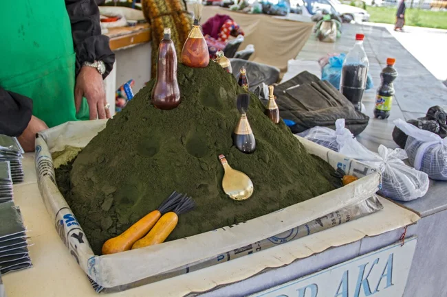 К этому добавляют воду, а в ряде случаев — специи или ароматические добавки, чтобы смягчить вкус и запах. Получившаяся масса лепится в маленькие зелёные шарики, которые и поступают в продажу.
