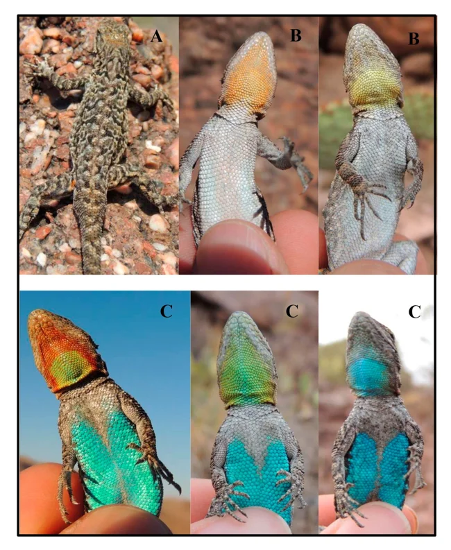 Все различия видны на пузе. Самцы с синим или зеленым пятном на горле агрессивны и доминантны, причем чем больше пятно, тем выше уровень агрессии. А вот если пятно оранжевое или оранжево-зеленое, это говорит о миролюбивой стратегии жизни самца.