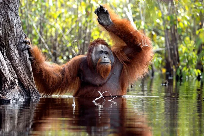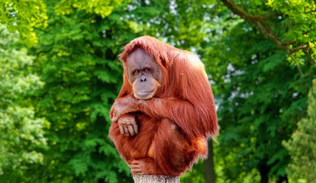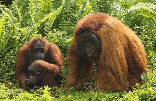 Орангутаны — достаточно крупные и чрезвычайно умные представители человекообразных обезьян. Раньше их даже считали лесными людьми, которые специально не разговаривают и сидят на деревьях, чтобы их не заставили работать. И это неудивительно, ведь эти приматы действительно очень похожи на нас.