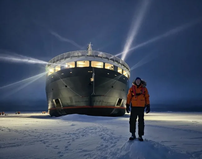 Сам Крис 5 сентября поднялся на борт ледокола Le Commandant Charcot. По пути судно достигло Северного полюса. Там Крис исследовал ледяные просторы, катался на беговых лыжах и снегоступах, плавал на каяках. Опытный дайвер отважился на погружение, нырнув в воду температурой -2 °C. Ему посчастливилось увидеть трёх белых медведей, песцов и несколько крупных колоний моржей, а также горбатых китов.