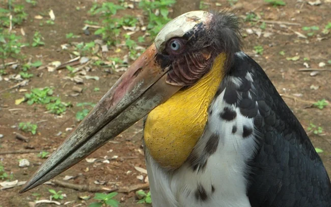Яванский марабу от двух других видов отличается желтым горловым мешком.