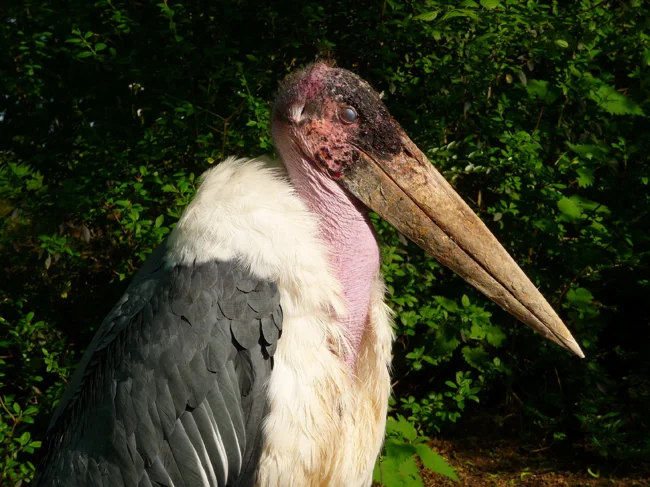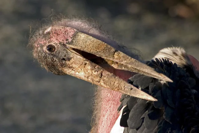От привычных нам аистов у марабу осталось одно название. Местные не церемонились и назвали птаху «птица-гробовщик». Траурное оперение в черно-белых цветах, непропорционально огромный грубый клюв, голая красная шея и голова. Страшно представить, какого ребеночка принесет ТАКОЙ аист!