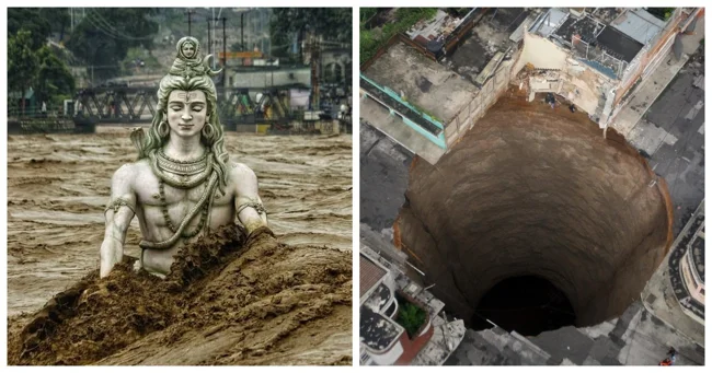 10. Затопленная статуя бога Шивы во время наводнения в водах реки Ганг, 17 июня 2013 г.