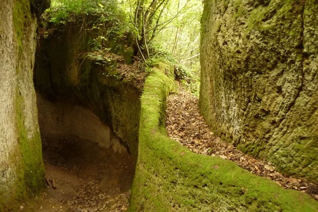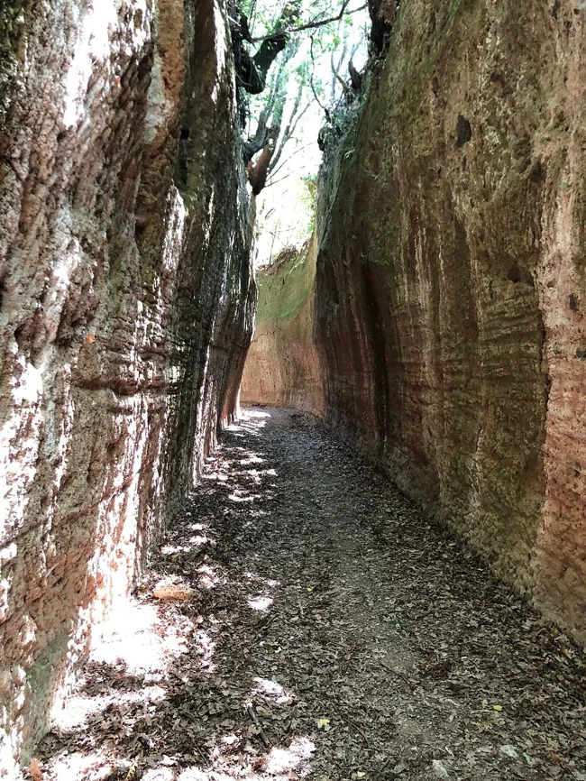 Эти тропы называются Виа Кава, что означает «высеченные дороги», однако их происхождение до сих пор окутано тайной. Учёные полагают, что их создала цивилизация, предшествовавшая римлянам, возможно, этруски, жившие на этих землях за пять столетий до возвышения Рима. Но не исключено, что возраст Виа Кава гораздо более почтенен, чем можно предположить.