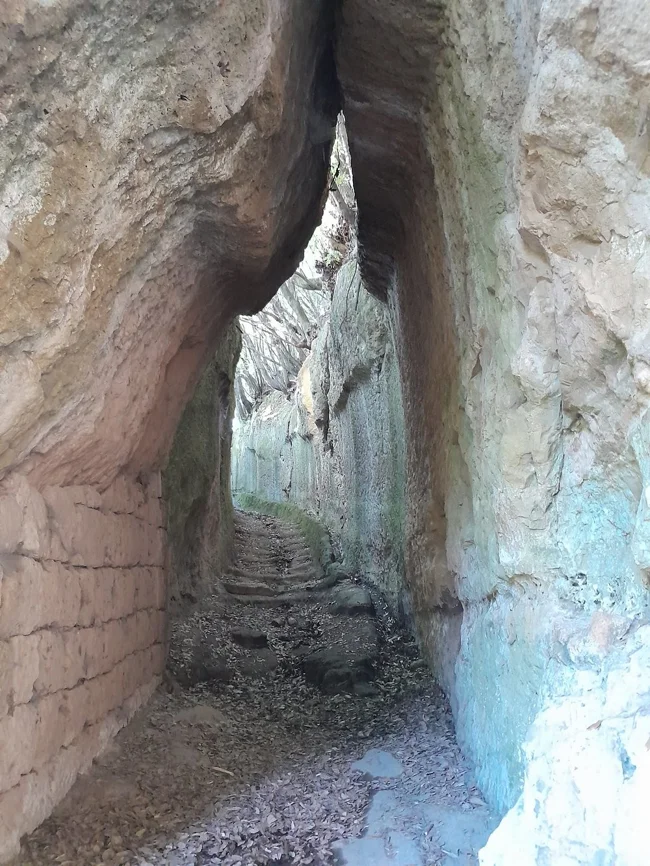 Многие из этих троп слишком узки для повозок, но на некоторых до сих пор видны глубокие колеи, прорезанные в скале за долгие годы железными ободами колёс. Позднее на каменных стенах стали вырезать небольшие святилища и распятия.