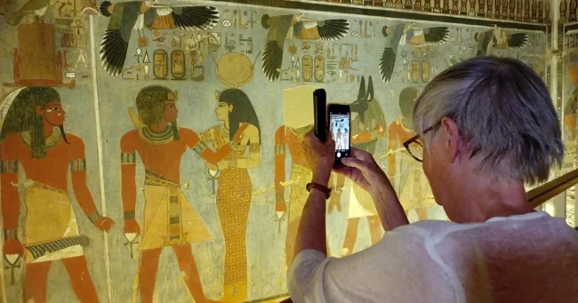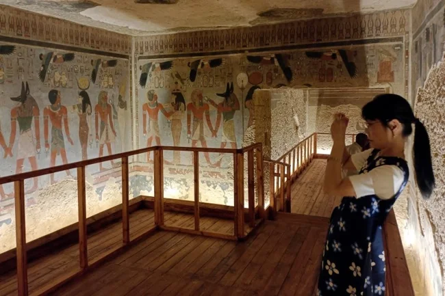 Министр туризма и древностей Египта, Шериф Фатхи, представил гробницу публике в Луксоре 4 октября. На стенах вновь сияют изображения фараона и его жены.