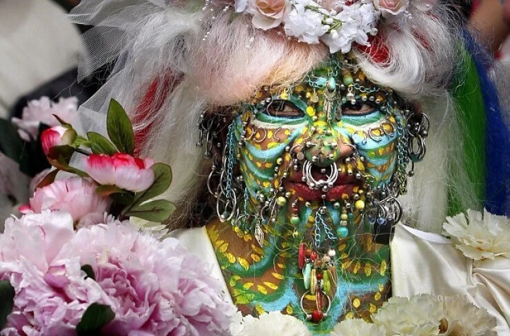 Фотография со свадьбы Элейн Дэвидсон в Эдинбурге. С 6925 проколами она является самой пирсингованной женщиной в мире.