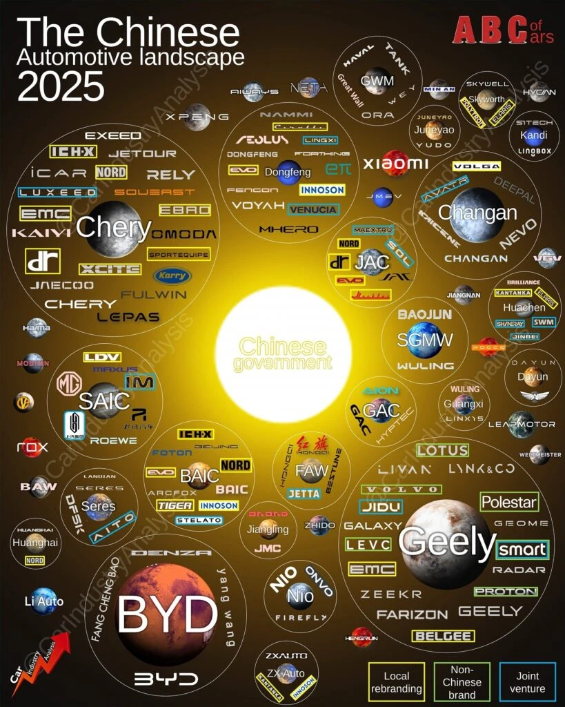 Китайский рынок автомобилей может показаться запутанным из-за огромного количества брендов, но подробная инфографика помогает разобраться в его структуре. Однако изучение этой информации может вызвать еще больше вопросов.