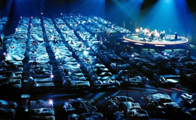 Что это за флешмоб любителей поспать? Нет, это не сходка сонь, а концерт немецко-британского композитора Макса Рихтера. В 2015 году он написал альбом-колыбельную Sleep, основанный на нейробиологии сна, и с тех пор гастролирует с ним по миру. Длительность композиции — 8,5 часов. Музыканты играют с ночи до рассвета: сначала музыка мягкая и убаюкивающая, а к утру становится энергичнее для более лёгкого пробуждения.