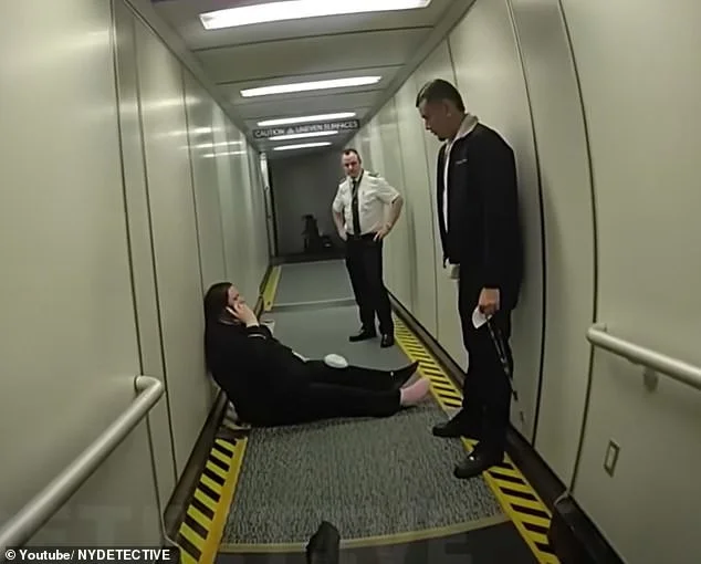 Тётя пытается успокоить её, но девушка продолжает тяжело дышать. Слышно, как Мора говорит: «Этот парень [бортпроводник] толкнул её, и она упала».