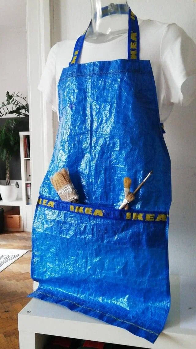 3. Фартук из старой сумки IKEA. Ещё и с карманом!