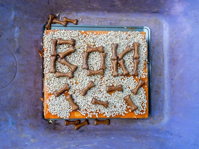 Чтобы поддержать его и отметить выздоровление, друзья подарили медведю торт из сладкого картофеля, орехов, семечек и даже мышей.