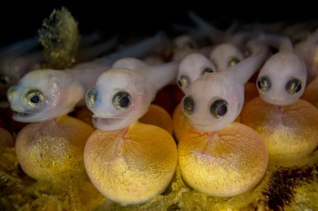 6. Мальки рыбы-мичмана, всё ещё прикреплённые к желточному мешку
