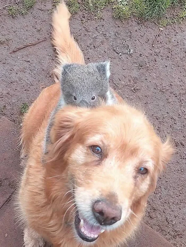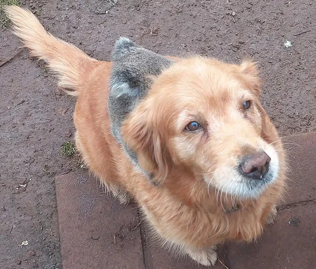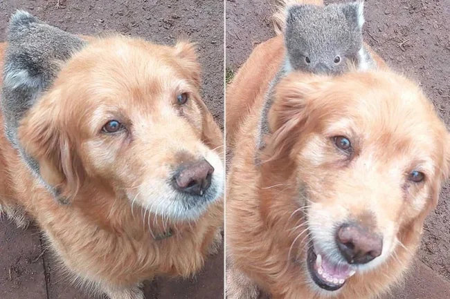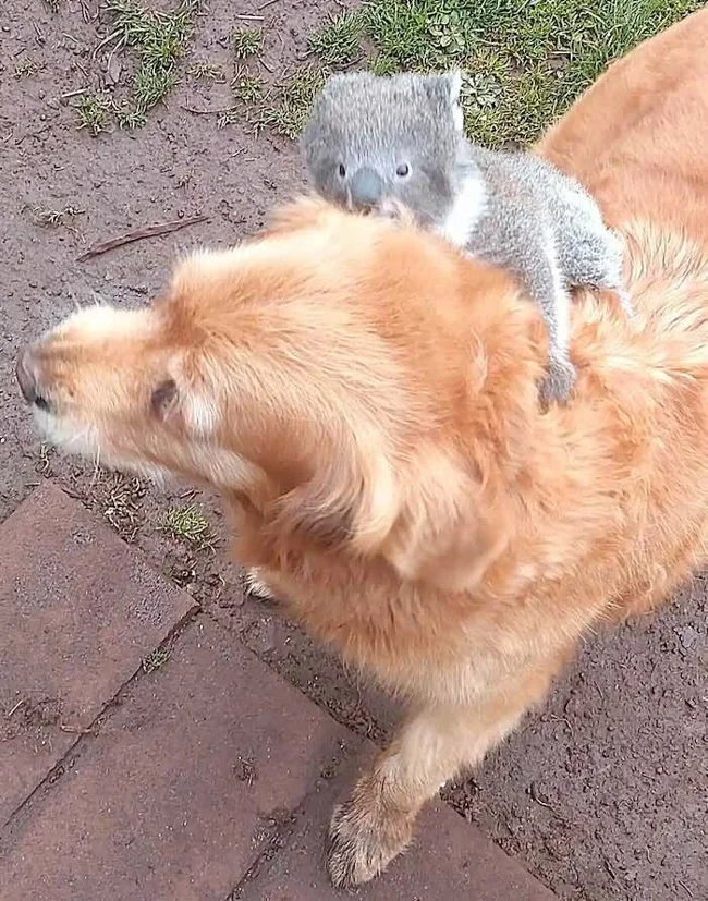 Золотистый ретривер Денни из Австралии прокатила на спине детёныша коалы, упавшего с дерева рядом с домом.