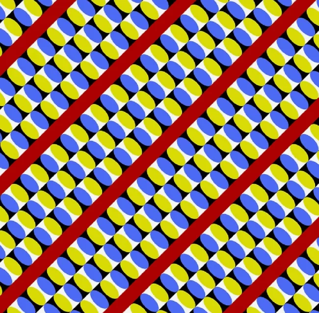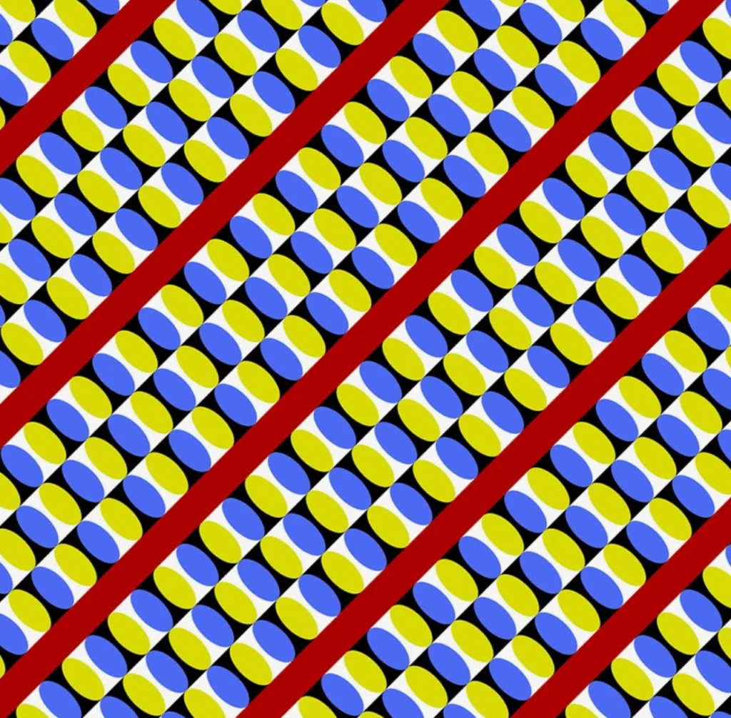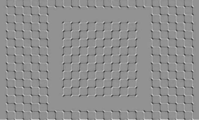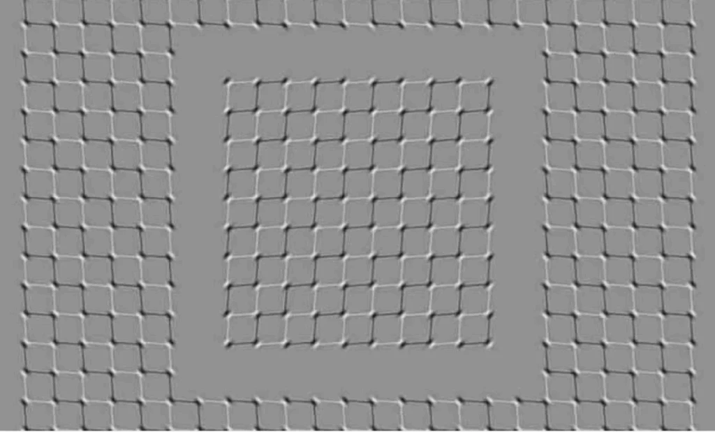 Если смотреть эту картинку как бы «целиком», то создается впечатление, что все движется. Но стоит только остановить свой взгляд на отдельном элементе, движение тут же прекращается.