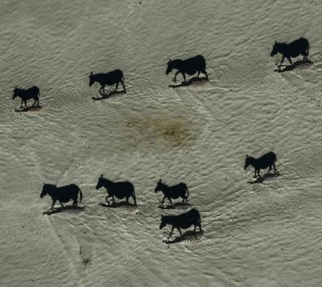 Примеров таких оптических иллюзорных фото можно найти много. Это лишь один из них. Если вам кажется, что животные те, что черные, то вы ошибаетесь. Присмотритесь к фото и вы обнаружите под черными тенями (а это именно они) тех, кому эти тени принадлежат- зебр.