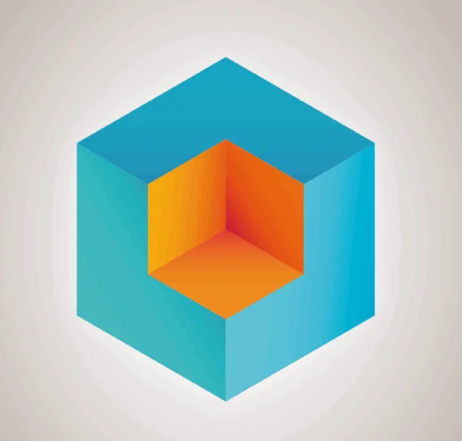 Вопрос: на картинке ниже оранжевый куб внутри синего или перед ним?