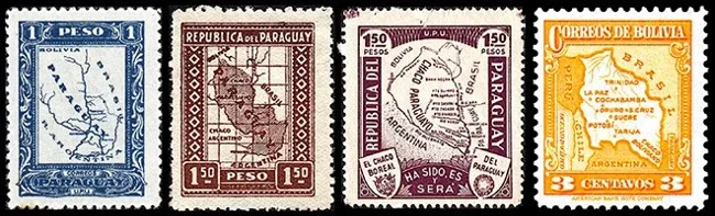 В 1927 году Парагвай выпустил марку с картой, где спорная территория была обозначена как парагвайская. Такую наглость Боливия стерпеть не могла и ответила симметрично -выпустив марку, где спорная земля отображалась как боливийская. Этот "почтово-марочный" спор продолжался несколько лет, изрядно электризуя общественность обеих стран.