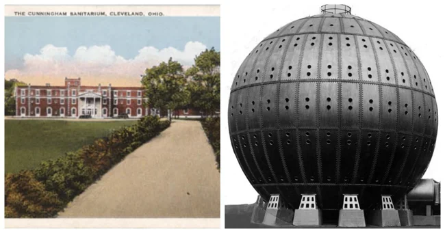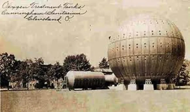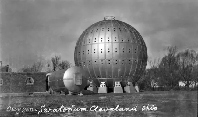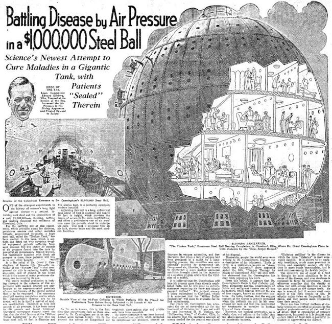 На берегу озера Эри в Кливленде (США) когда-то возвышался гигантский стальной шар высотой с шестиэтажный дом. Внутри этой 20-метровой сферы располагались 38 комнат, где пациенты доктора Каннингема проводили по две недели в атмосфере сжатого воздуха, дыша кислородом под давлением.