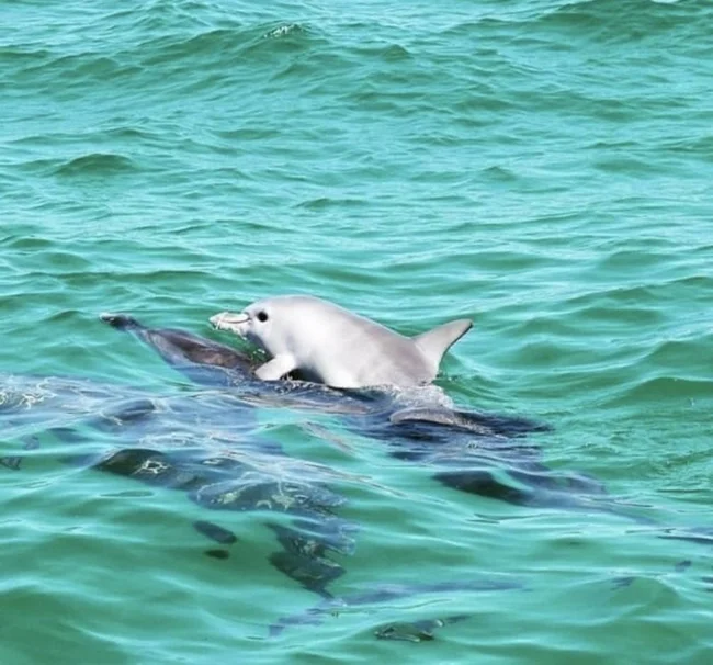 18. Малыш-дельфинёнок катается на маминой спине