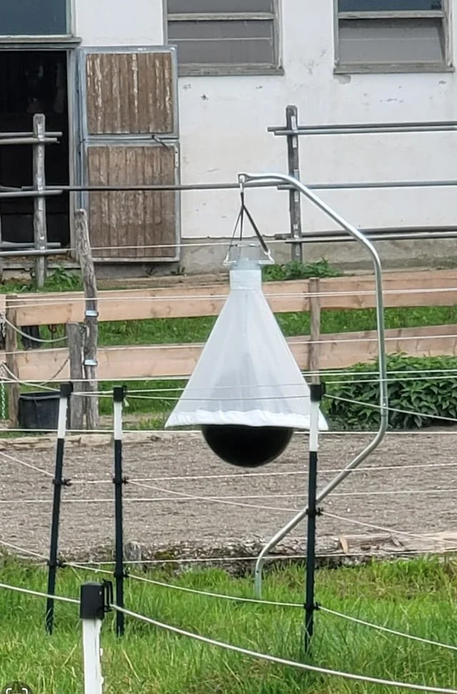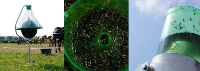 Ловушка для слепней. От нагретого в солнечный день надувного чёрного шара, висящего внизу ловушки, исходит тепло. Попав на него, самки слепней (а кусаются только они) поднимаются в контейнер, откуда они не могут сбежать.