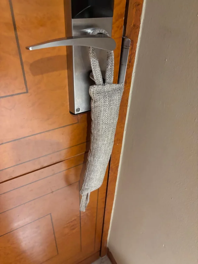 8. Тканевая продолговатая подушка с петлями на дверной ручке в отеле