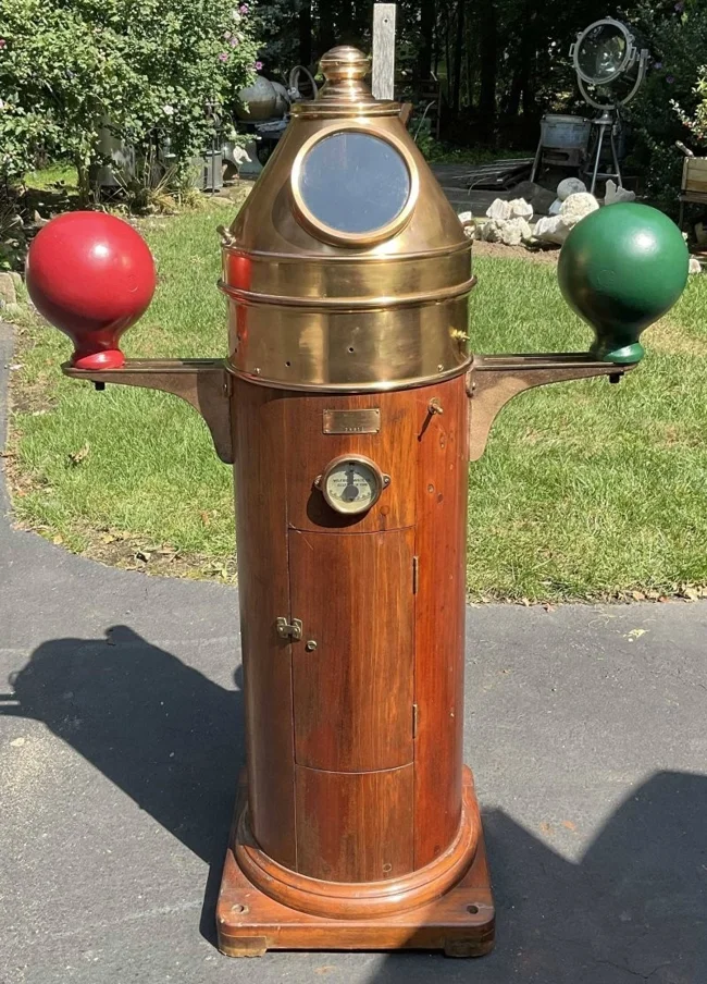 По бокам у него — шары из магнитомягкого железа, уменьшающие девиацию, то есть отклонение компаса от правильного направления, вызванное корабельным железом.