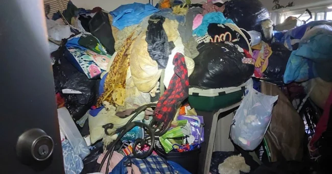 1 октября сотрудники Общества защиты прав человека Сан-Диего при поддержке Департамента шерифа приступили к проверке. Им предстало пугающее зрелище: всё пространство, от пола до потолка, было завалено предметами домашнего обихода и мусором. Но самое страшное — среди беспорядка они обнаружили 11 собак и двух кошек.