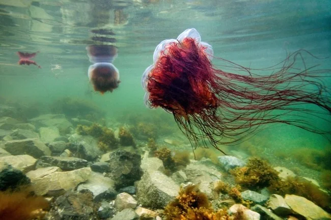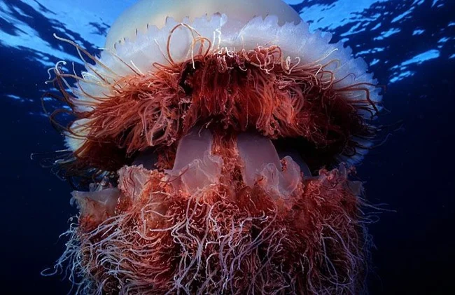Представитель сцифоидных из отряда дискомедуз. Также известна как «львиная грива» из-за свисающих щупалец, напоминающих гриву царя зверей.