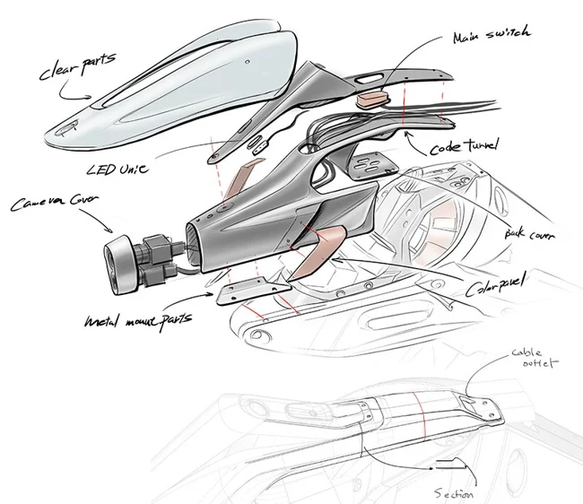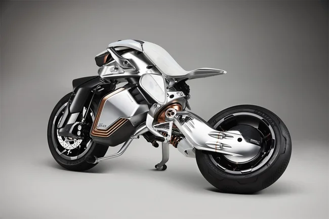 AI здесь на уровне: распознаёт твоё лицо, реагирует на жесты и голосовые команды. Махнул рукой — и он едет за тобой. Нет классического руля — вместо него интегрированные рукоятки в корпусе, чтобы всё было как в фантастике. Задний маятник (pivot swingarm) крутится, делая байк манёвренным как дрон. А структура LEAF делает движения органичными, будто мотоцикл живой и понимает тебя без слов.
