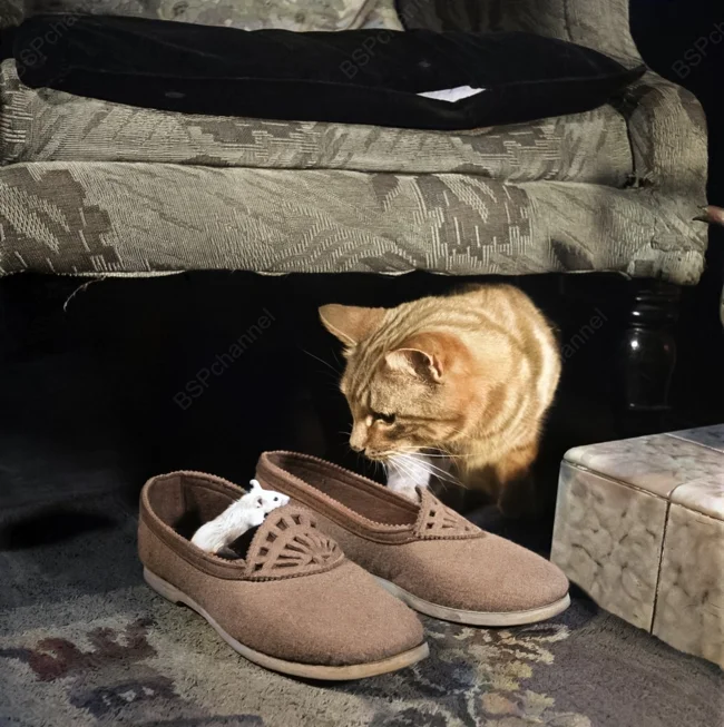 Рыжий Кот играет с мышкой по кличке «Белоснежка» дома, 1949 год. ![]()