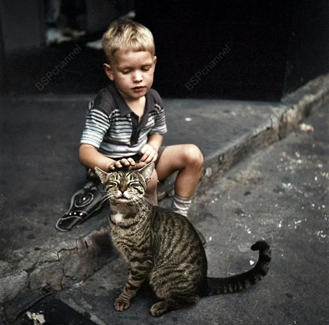 Мальчик с котом. Нью-Йорк, 1954 год.