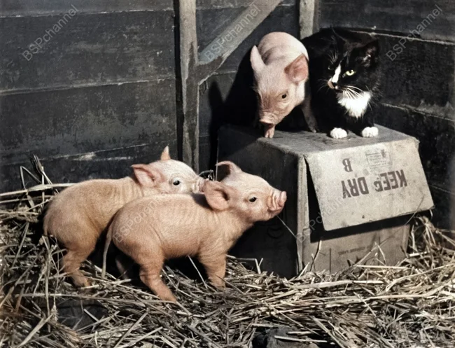 Кошка по кличке Манни из Деухама и её приёмные поросята, 1941 год.